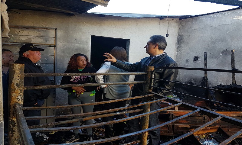 El Mandatario Fernando Pérez Rodríguez y Presidenta del patronato DIF Tulancingo, Rosario Lira de Pérez, ofrecieron respaldo total a familia de colonia La Cañada que perdió todo en un incendio