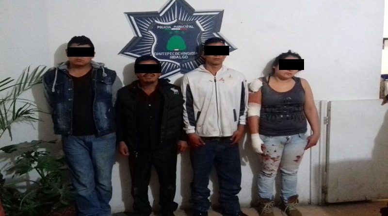 Ahí, se logró las detenciones de tres varones y una mujer, cuyas iniciales son: I.M.F de 31 años; B.M.P de 49 años; J.A.C.H de 26 años y V.H.V de 26 años de edad, todos ellos vecinos del municipio de Tulancingo.