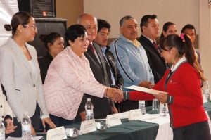 Al acto de clausura de cursos asistieron autoridades estatales de educación, profesores y alumnos y así como integrantes de la asamblea que acompañaron a la alcaldesa para la entrega de documentación a los egresados.