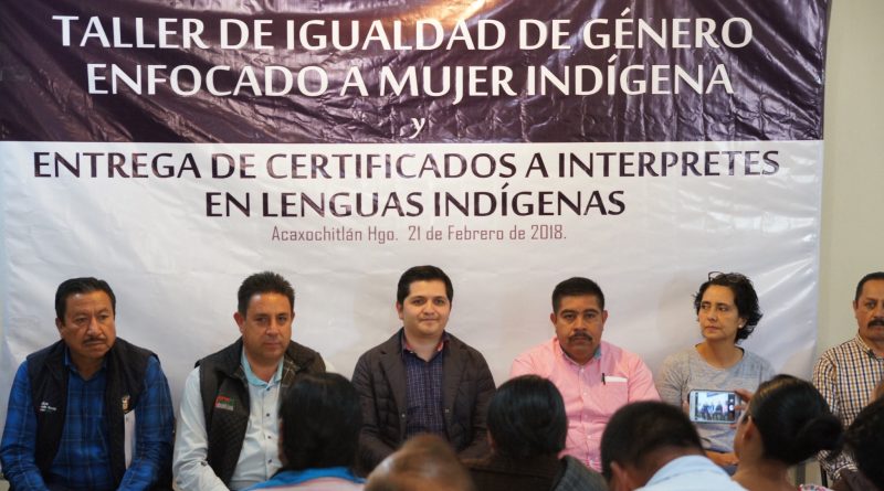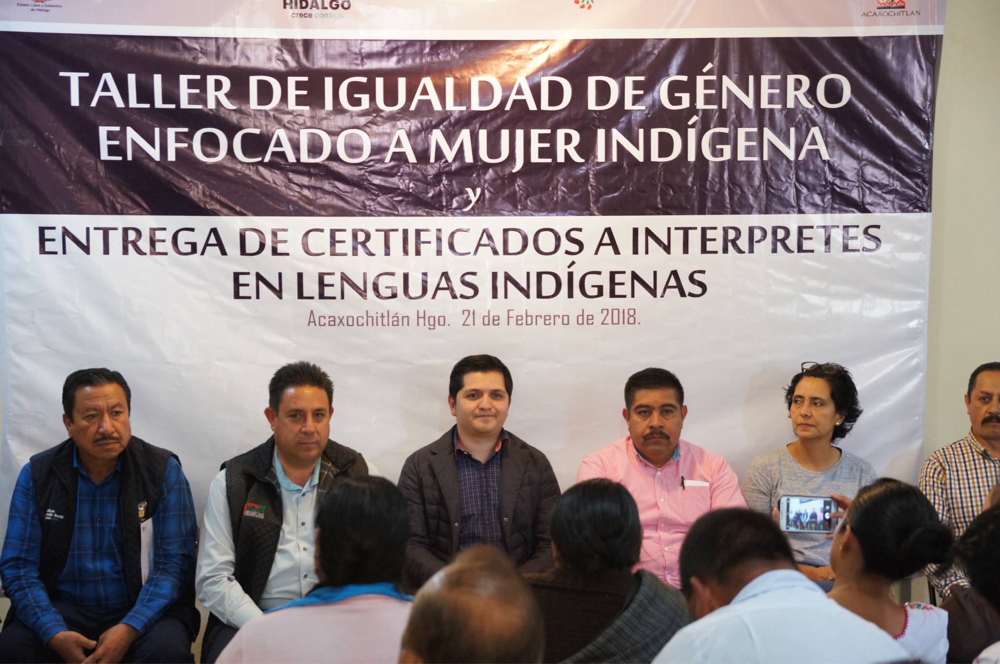 En el marco del día Internacional de la Lengua Materna,fueron certificados intérpretes de lengua indígena de municipios de la región Otomí Tepehhua del Estado de Hidalgo y previo a la ceremonia de certificación también se impartió el taller de igualdad de género enfocado a la mujer indígena con la colaboración de la psicóloga María de los Ángeles Hernández Mendizabal de la Comisión Nacional de Derechos Humanos