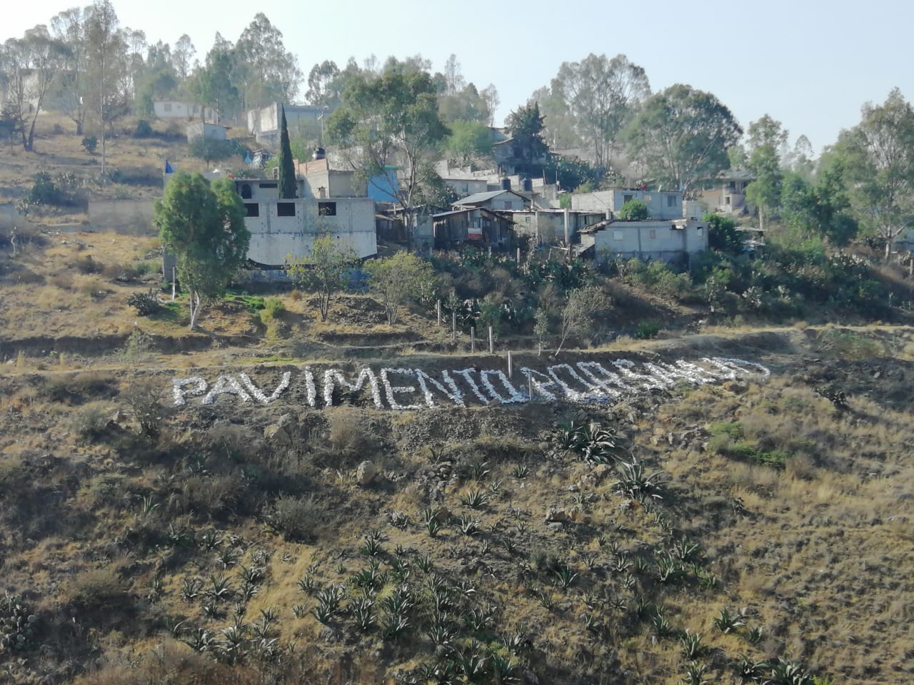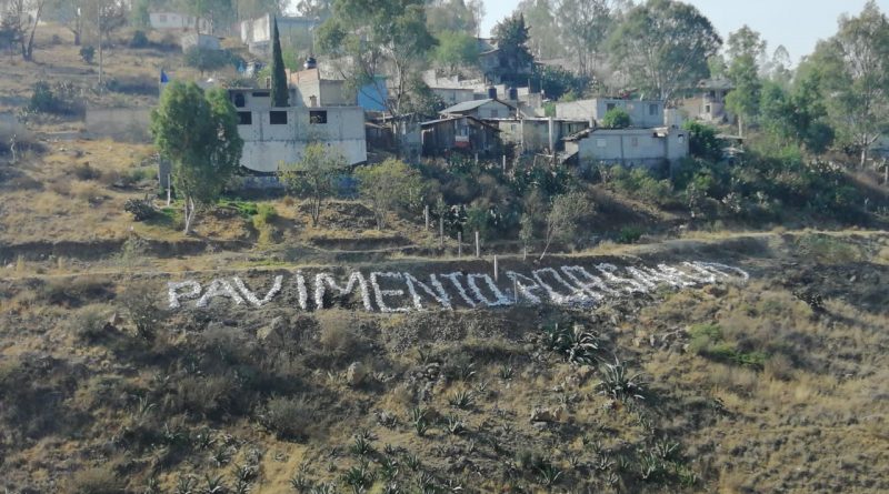 Colonos de Viveros de la Loma levantaron la voz con un letreo hecho con piedras pintadas de color blanco, colocadas en la ladera norte del cerro de la colonia, donde se lee la frase: “Pavimento por Salud”.