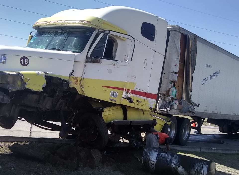Minutos después de las 10:00 horas de ayer, lunes, un tracto camión marca Freightliner color amarillo con blanco y placas de circulación 58AJ2H, con caja seca que circulaba sobre la vialidad federal en dirección hacia el Tejocotal, mientras que en dirección contraria, circulaba un camión unitario pesado, color blanco, marca FORD, con placas HJ27920, habilitado con plataforma.