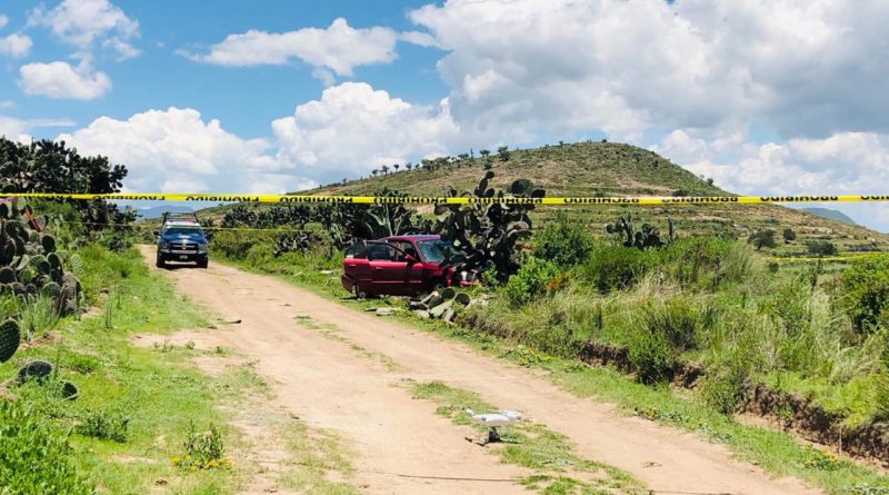 Al arribar al lugar, los elementos policiacos localizan en un camino de terracería, a un lado de una nopalera, un vehículo Honda Civic, color rojo, y en su interior a un masculino ya sin vida y varios cartuchos percutidos de arma de fuego.