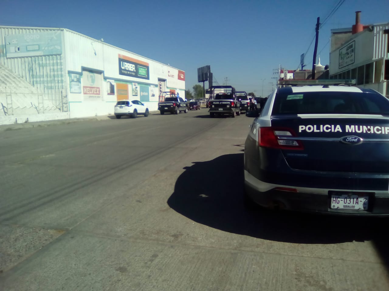 Aproximadamente a las 8 de la mañana, elementos policiacos de los dos mandos, acudieron al llamado de auxilio que hizo el propietario de una bodega de muebles, pues notó en su sistema de circuito cerrado de televisión que al interior de su bodega había dos camiones que no eran de su propiedad.