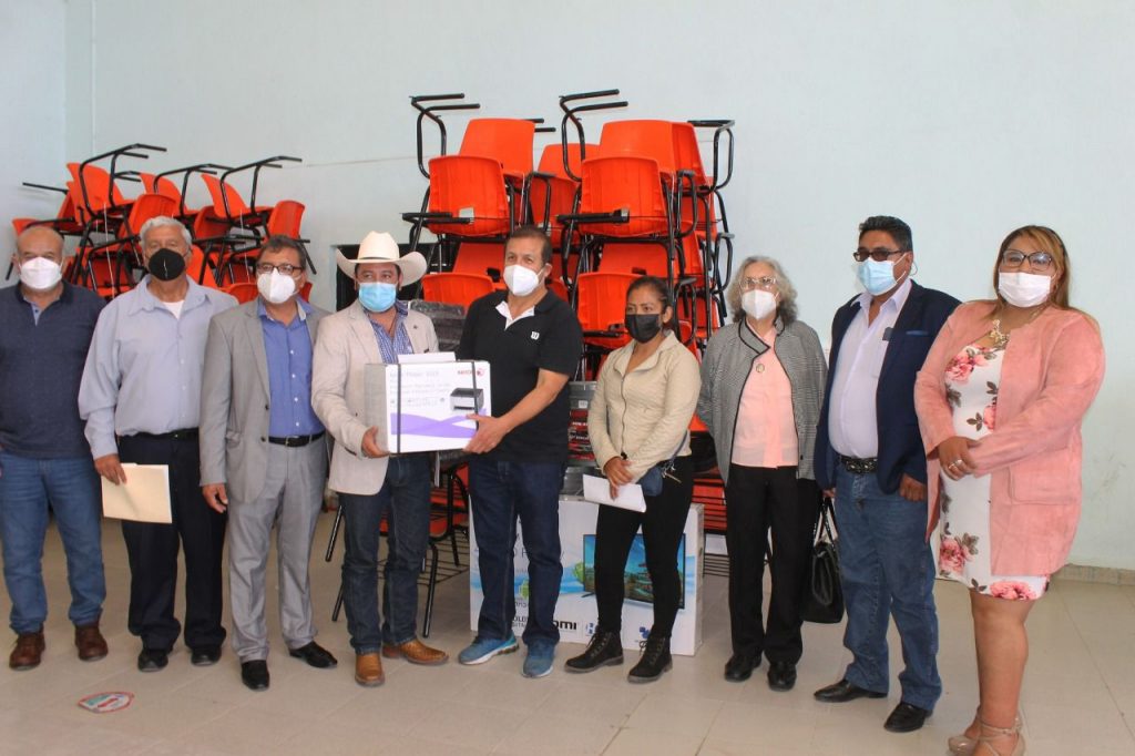 El Mtro. José Luis Flores Hernández, subdirector de servicios regionales de educación Tulancingo acompañado de la Lic. Roció Jaqueline Sosa Jiménez, diputada local, de Marcos Miguel Taboada Vargas, presidente municipal de Singuilucan, de Víctor Hernández, secretario general municipal, de la Profra. Gracia Yareli Franco García, directora de educación municipal  y autoridades educativas del nivel preescolar, primaria y secundaria entregaron en el auditorio municipal de Singuilucan mobiliario, equipo y material en beneficio de 19 escuelas de Educación Básica para su oportuna rehabilitación.