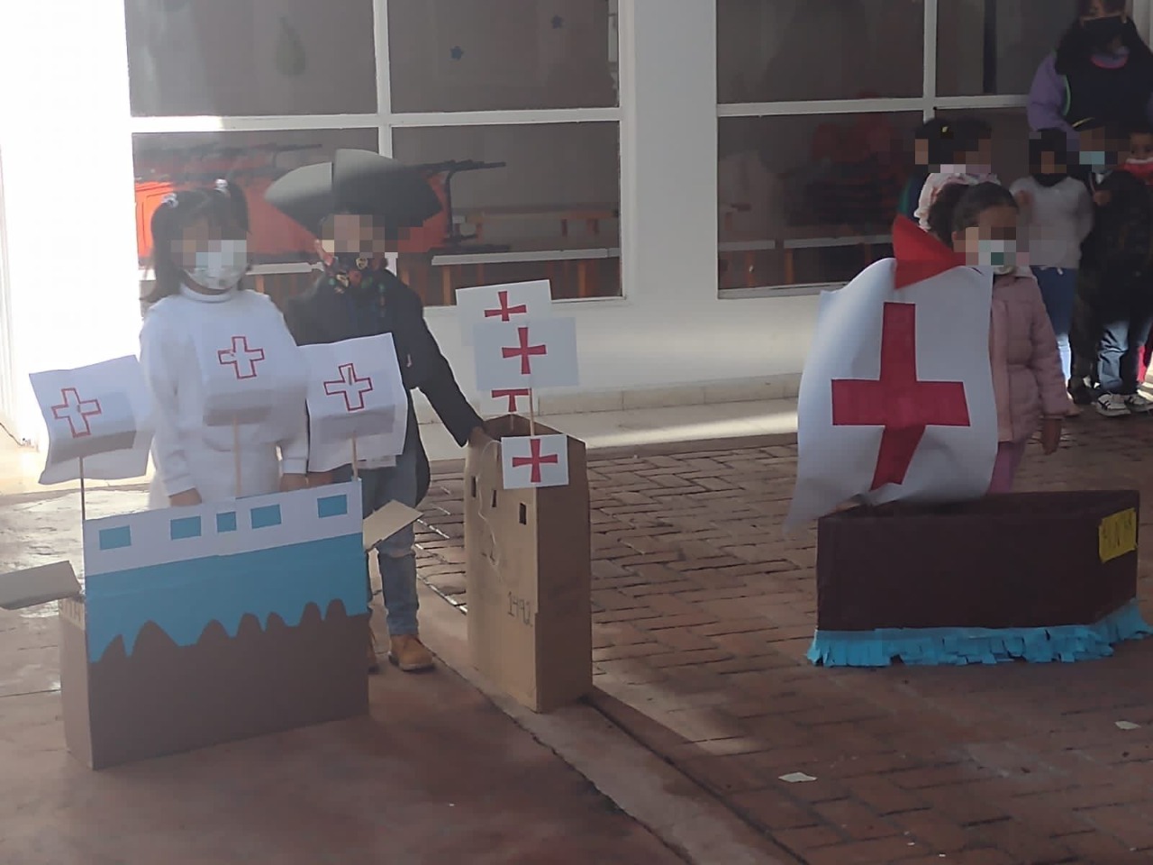 Maestras, niñas y niños del CAIC Juárez, dirigido por María Magdalena Gómez Vera, emularon el momento en que Cristóbal Colón hiciera su llegada al nuevo continente, después conocido como América.