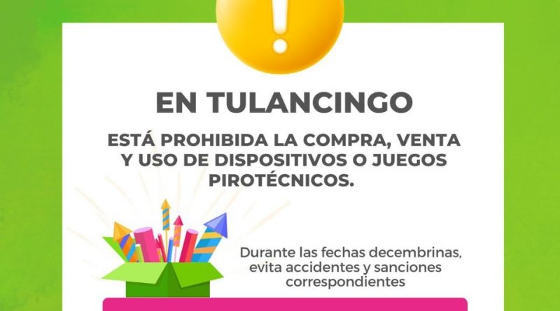 Félix Chávez San Juan, director de Medio Ambiente dio a conocer que fue entregado a la arquidiócesis de Tulancingo un oficio donde se pide el apoyo para comunicar a templos e iglesias que se evite la quema de pirotecnia, en los festejos guadalupanos y otras celebraciones propias de la temporada, ya que en Tulancingo existe reglamentación que prohíbe esa práctica.